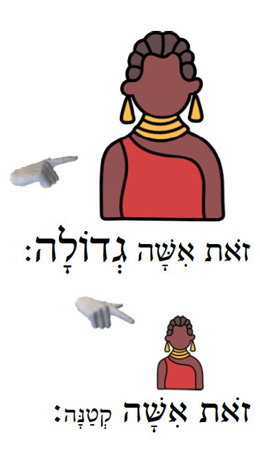 הַכֶּבֶשׂ הַזֶּה גָּדוֹל: הַכֶּבֶשׂ הַזֶּה קָטֹן: