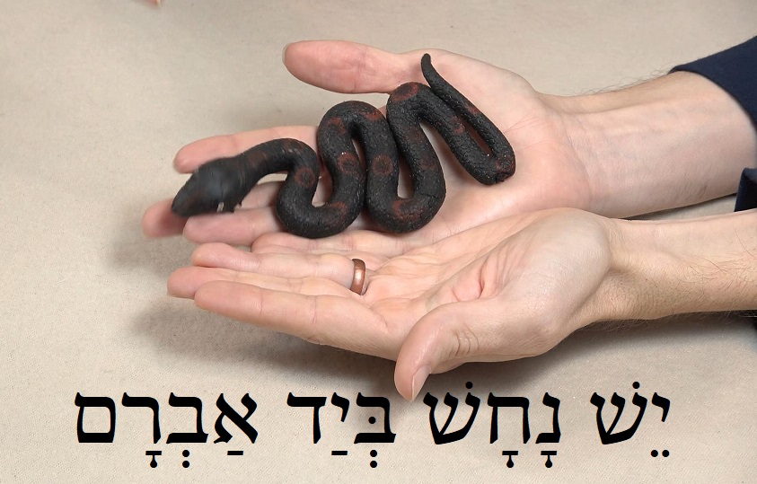 מַה־יֵּשׁ בְּיַד אַבְרָם? יֵשׁ בְּיַד אַבְרָם נָחָשׁ: יֵשׁ נָחָשׁ בְּיַד אַבְרָם: