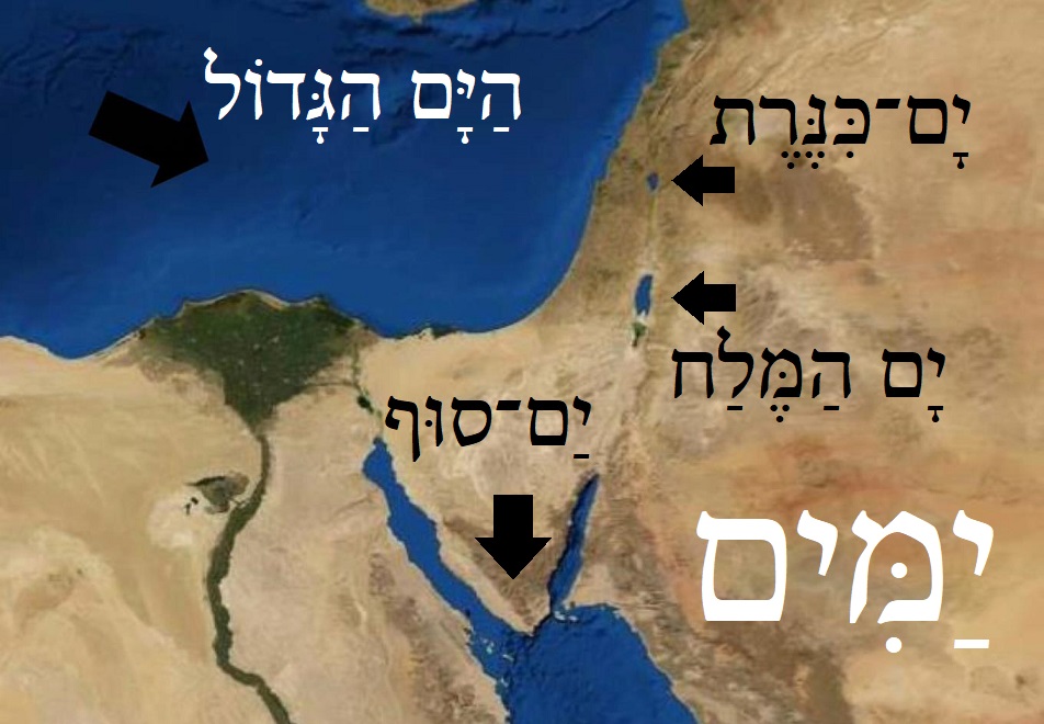 יַם־סוּף, יָם הַמֶּ֫לַח, יָם־כִּנֶ֫רֶת, הַיָּם הַגָּדוֹל, יַמִּים ָ ה ← ַ ת