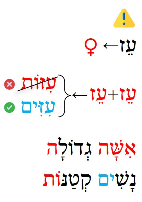 הָעִזִּים הָאֵלֶּה קְטַנּוֹת: הָעִזִּים הָאֵלֶּה גְּדֹלוֹת: אֵלֶּה קְטַנּוֹת: אֵלֶּה גְּדֹלוֹת: