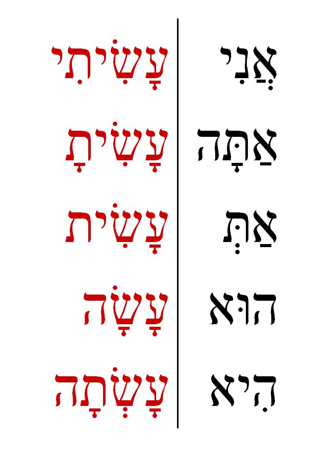 אֲנִי הָלַכְתִּי: אַתָּה הָלַכְתָּ: אַתְּ הָלַכְתְּ: הוּא הָלַךְ: הִיא הָלְכָה: