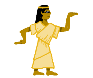 [בֵּת 🗨 אַבְרָם, קוּם! לֵךְ אֶל־הַנָּהָר! שֵׁב עַל־הָאֶבֶן אֲשֶׁר עַל־שְׂפַת הַנָּהָר! [אַבְרָם עָשָׂה כַּאֲשֶׁר דִּבְּרָה בֵת] ]